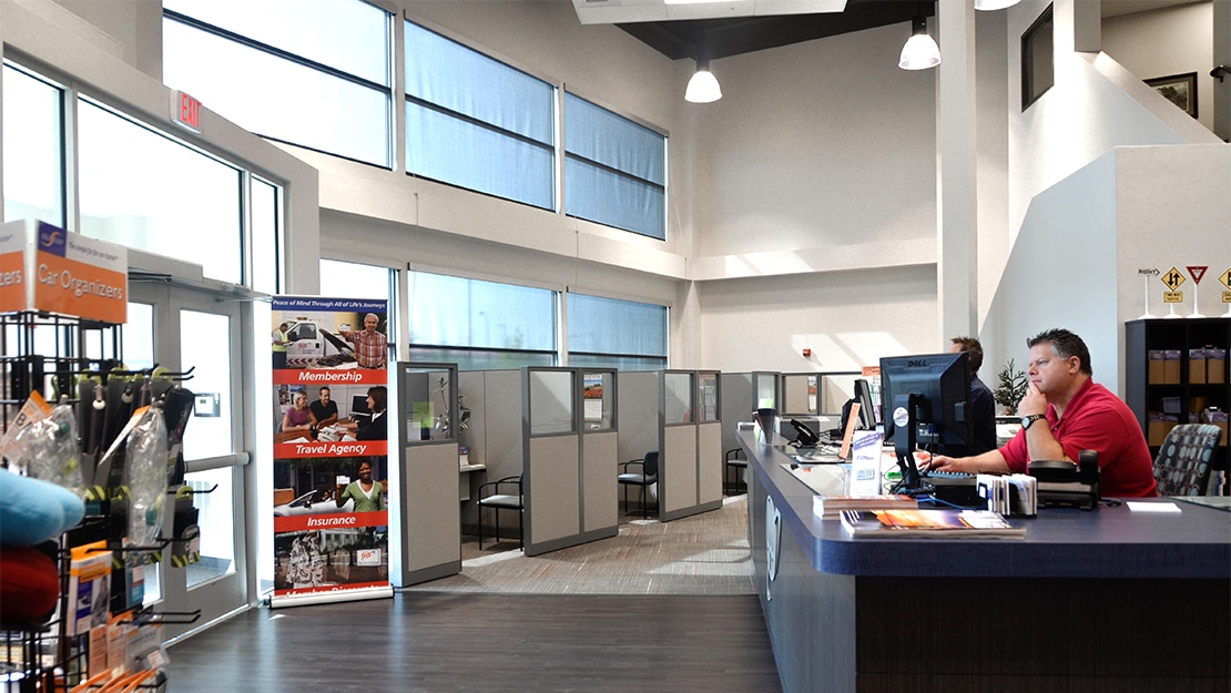 Architectural teams worked closely with AAA stakeholders to create an interior that serves the immediate and anticipated needs of the organization in an efficient, open office concept. The result is an attractive and functional new facility with an eye-catching façade—day or night—with respect to its prominent location with visibility from multiple vantages.