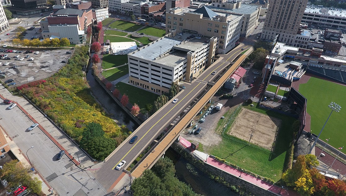 To create an inviting public space, spur new business and social growth, and create a better environment for vehicles, bicyclists and pedestrians, the City of Akron has partnered with GPD to help with the ongoing revitalization of its Main Street corridor.