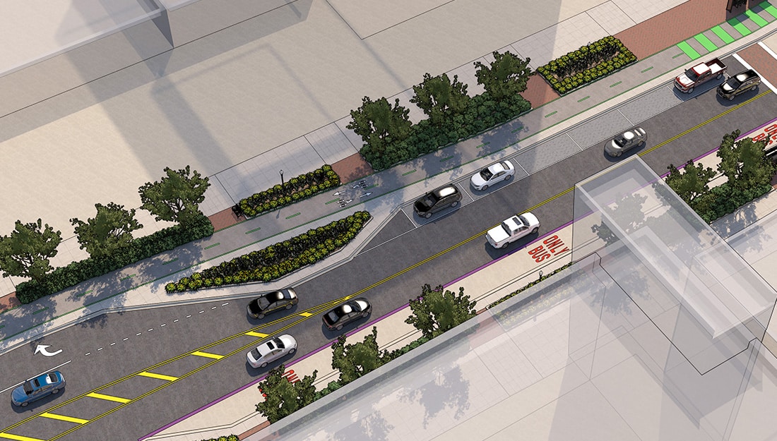Uneven sidewalks, challenging parking areas, deteriorating pavement and inconsistent, variable-width drive lanes had long caused frustration. GPD’s design provides an enhanced experience for vehicles, bicyclists and pedestrians, complete with consistent lanes and designated parking zones, loading zones and bus zones. Wider sidewalks with room for café seating offer pedestrians a comfortable location to walk and to socialize, and an extension of the cycle track will provide connectivity to the Towpath Trail.