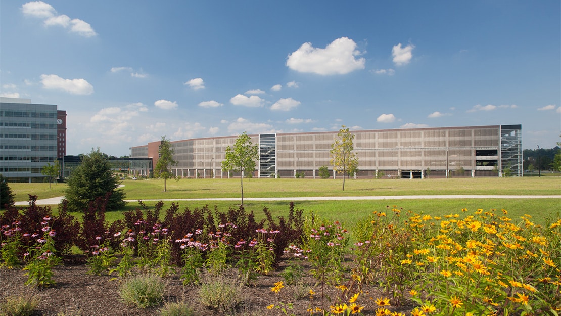 A recent parking deck project encompassed roughly 17 acres at Goodyear headquarters and called for lengthening the executive drive, extending a detention basin and designing a new courtyard entrance. As a previously developed industrial site, multiple utility relocations were required to accommodate new construction. GPD engaged with the City of Akron on the new rights of way and coordinated with multiple design firms to plan and build the new parking deck.