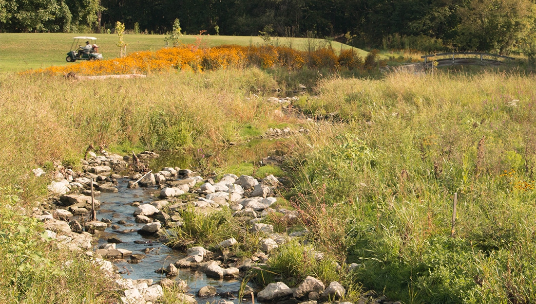The project was envisioned as the restoration of Mill Creek, a perennial tributary to the Cuyahoga River that runs through the golf course, and involved a 2,900-linear-foot footprint across two reaches of the property. NEORSD partnered with the City of Cleveland to acquire $1.35M in funding through the Ohio EPA’s Water Resource Restoration Sponsorship Program (WRRSP). GPD worked closely with all stakeholders from the very beginning, working in close collaboration through implementation. The successful design restored the stream channel to a natural meander and included connectivity to the floodplain; improved habitat, riffle complexes, wetland pools; stabilized bank; improved water quality; and enhanced golf play.