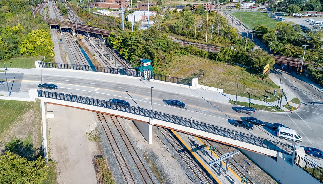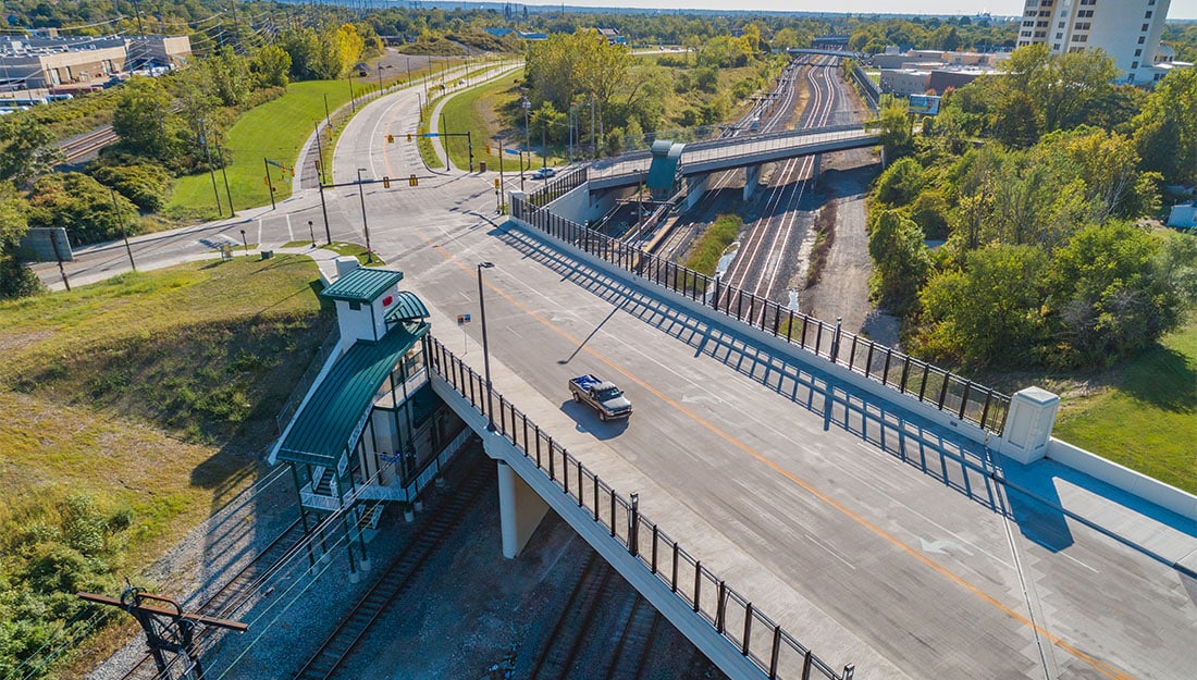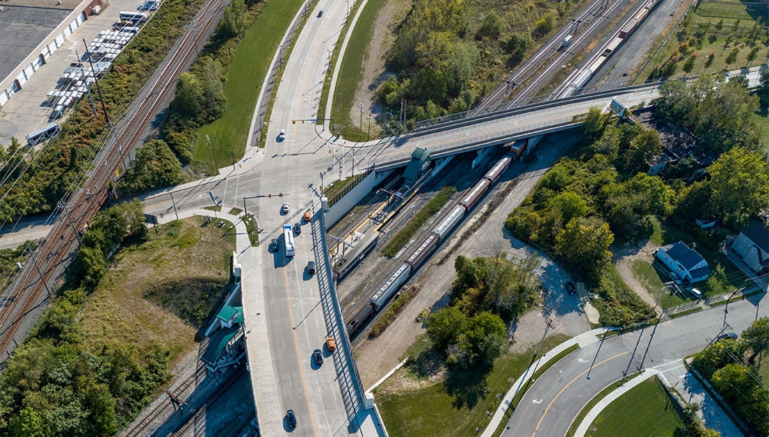 An existing, active, triple box combination sewer that ran longitudinally underneath the proposed bridge posed a unique challenge that GPD overcame with nontraditional methods to design substructures and foundations. Three-dimensional finite element methods allowed GPD to design efficient, tall substructures that not only support the bridge superstructure, but span the utilities passing through them. Additionally, GPD’s design of collection systems included the separation of combined sewers in the sewershed to not only support future separation initiatives, but to also provide means for water quality controls for private properties outside of the public right-of-way. These comprehensive improvements will better connect Cleveland communities and provide enhanced opportunity for future commercial development throughout the corridor.