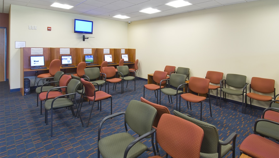 Many sustainable design concepts were incorporated into the project, including windows with exterior sunshades and interior roller shades, multi-level lighting, and low-VOC products throughout. A parking area incorporates permeable pavers to reduce stormwater runoff, and site design incorporated bioswales to pretreat a percentage of stormwater runoff.